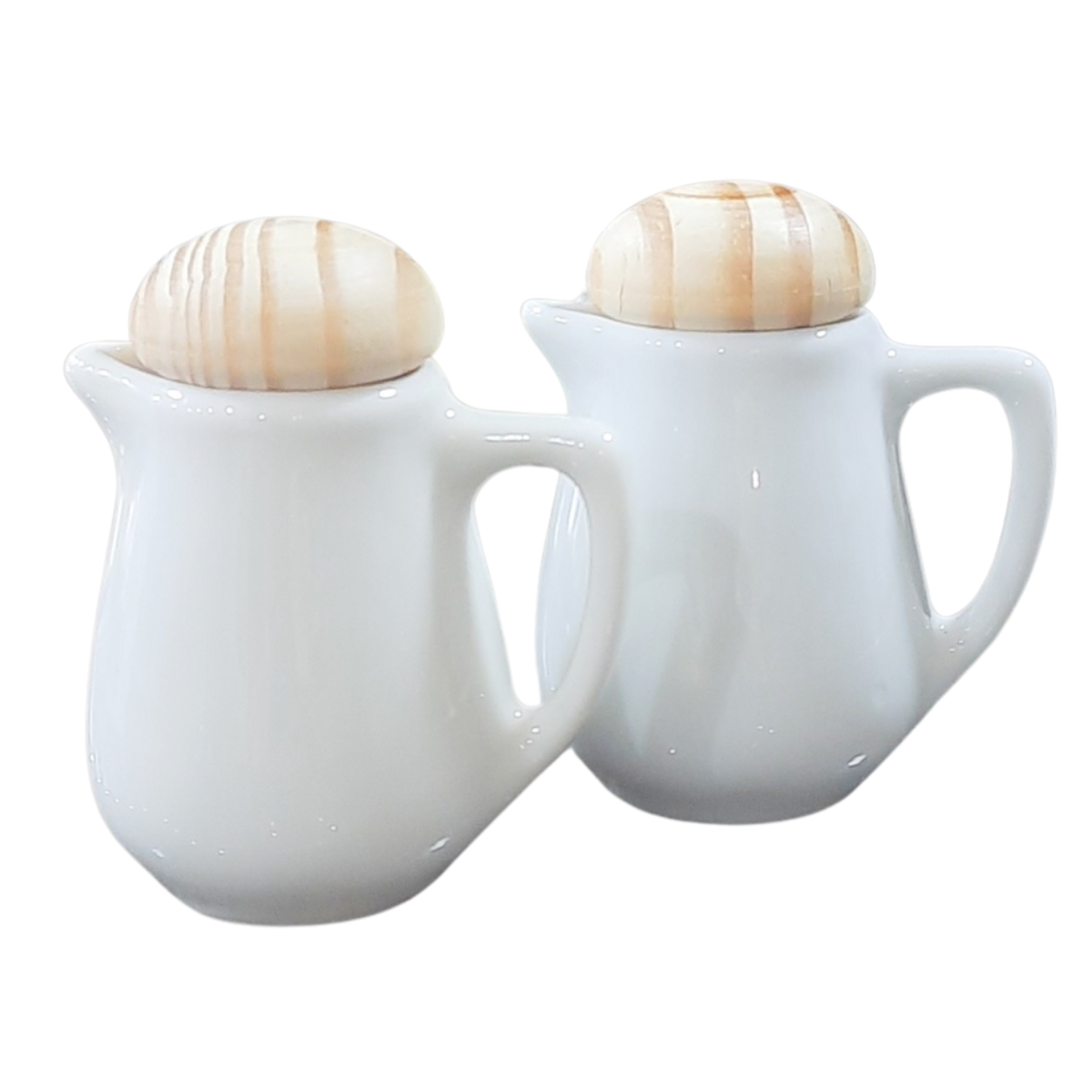 kit 2 Jarras 60ml para Molhos e Caldas, Galheteiro Azeite e Vinagre - Porcelana tampa pinus