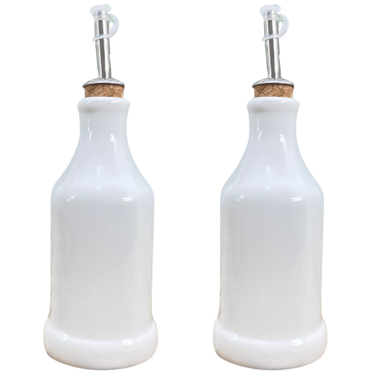 Kit Galheteiro 2 peças 300ml - Azeite e Vinagre - Porcelana Branca