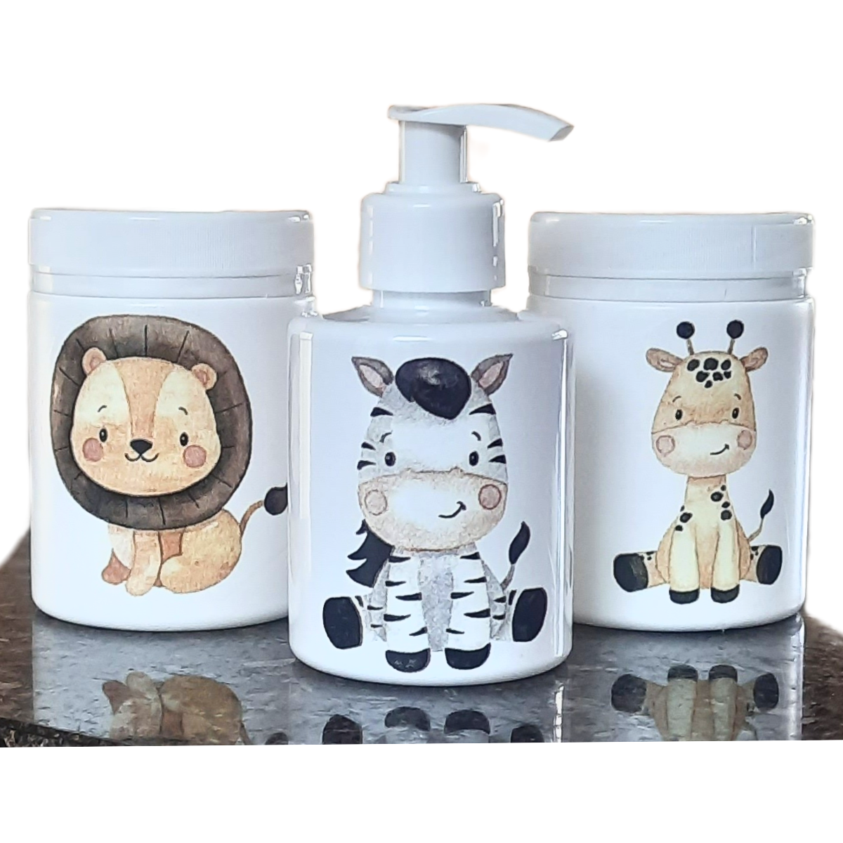 Kit Higiene Baby Safari 3 pçs - Tampa Com Trava - Plástico