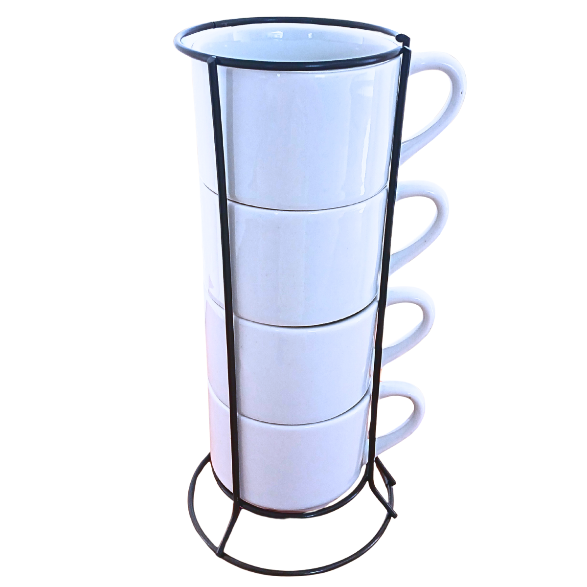 Jogo 4 Xicaras Café/Chá 200ml Empilháveis com suporte - Porcelana Branca
